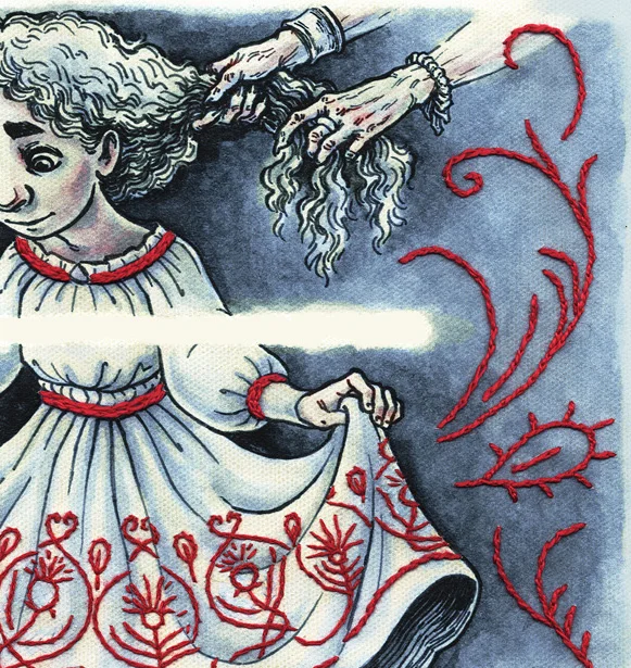 2-page comic created for the small comics anthology Meanwhile which is distributed to promote Ringling College of Art and Design. Ink wash with digital color and hand-embroidery.