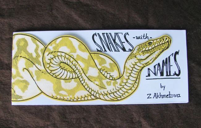 This is a zine that debuted at CAKE 2015, featuring 13 interior illustrations of real snakes with creative depictions of their names.