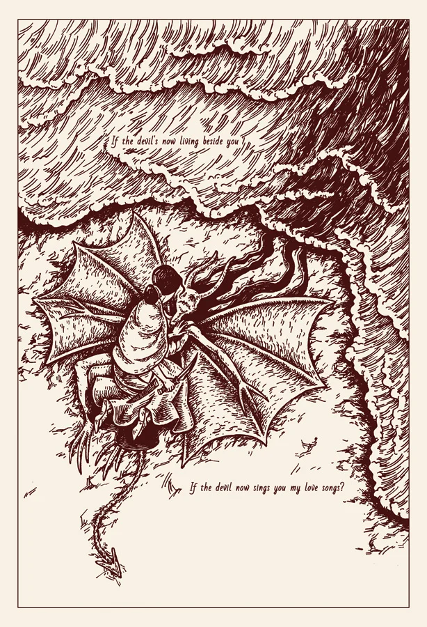 "Songs About the Devil," based on song lyrics by Natalia "Hellawes" O'Shea (part 1), and Alexei Hvostenko and Anri Volohonsky (part 2), translated from the Russian by me. 16 pages.