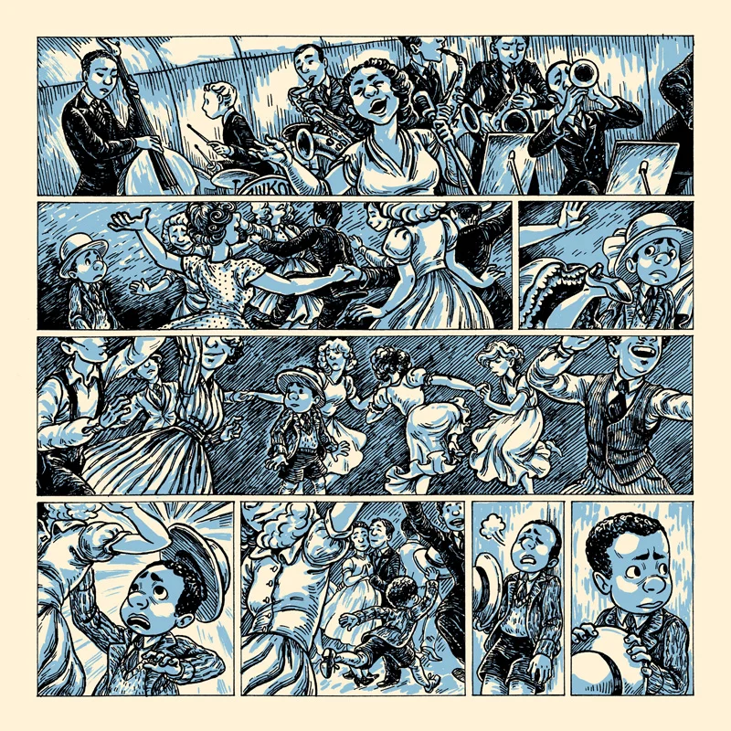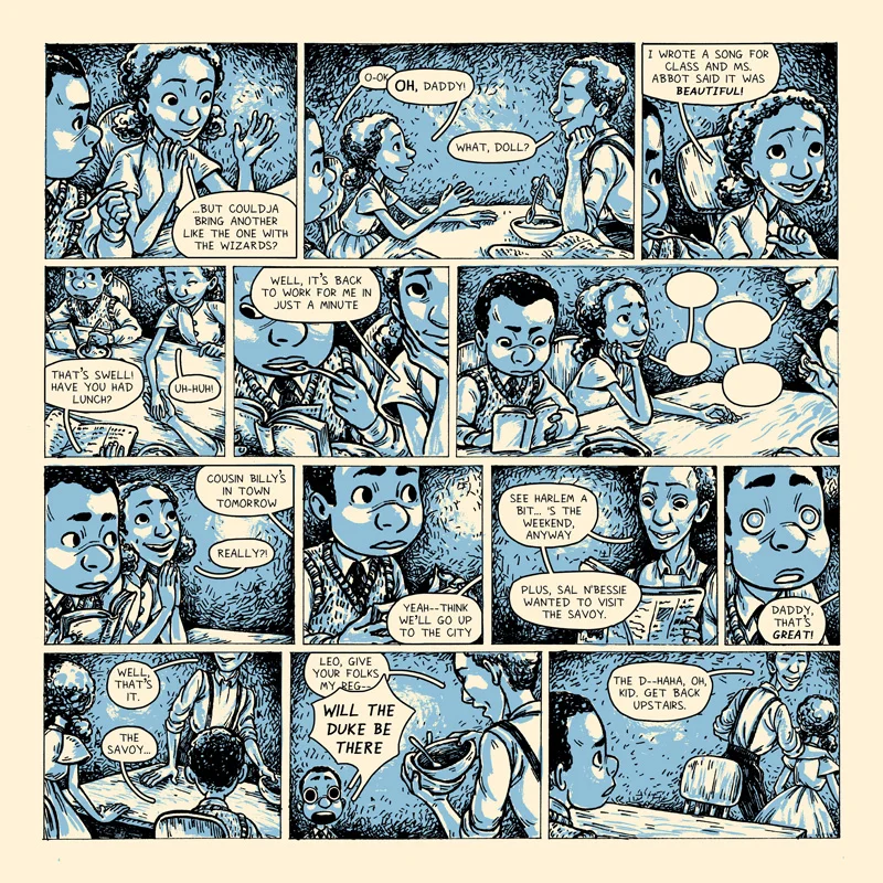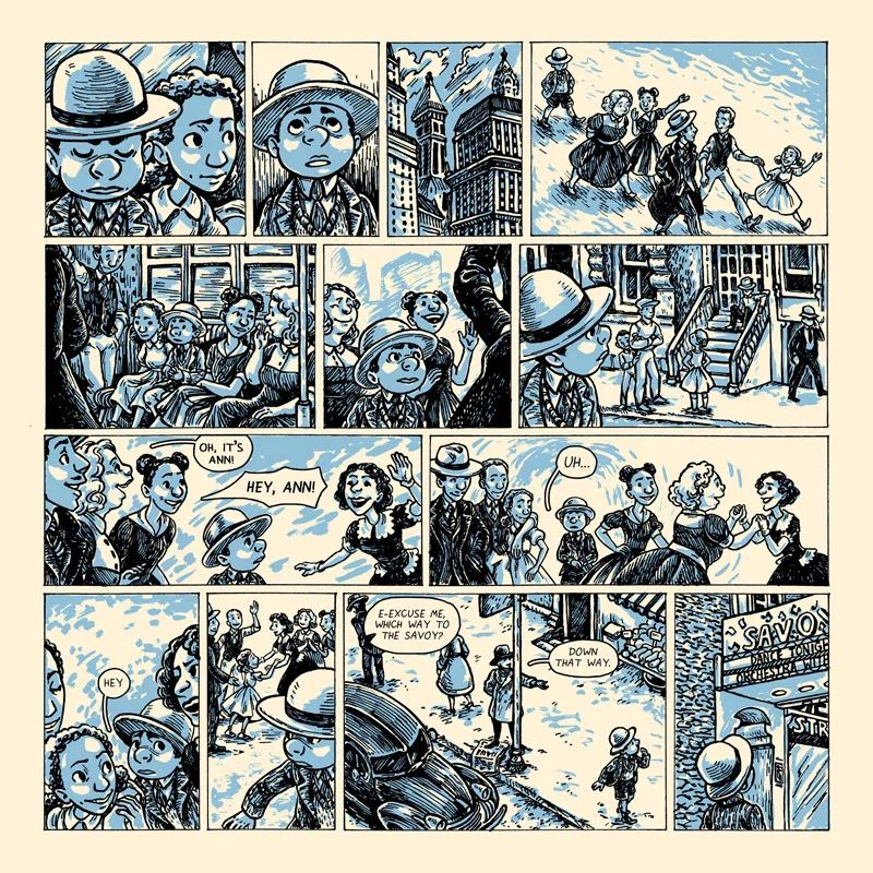 "Take the A Train", 8 pages. Half of a collaborative book with M. Dean. Inspired by the Billy Strayhorn/Duke Ellington composition of the same name.